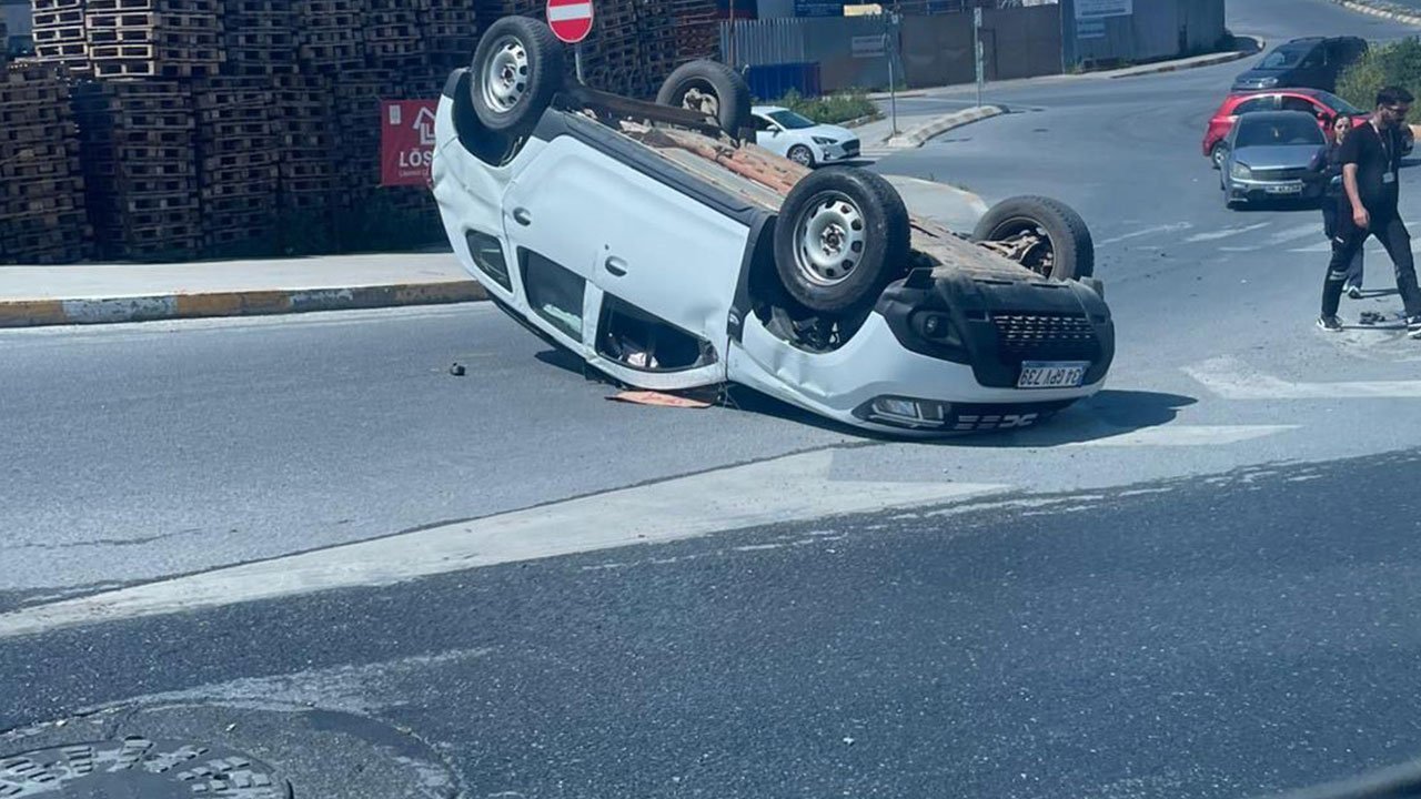 Esenyurt’ta süratle geldiği iddia edilen sürücünün çarptığı otomobil takla attı. Yaşanan kazada, takla atan otomobilin sürücüsü yara almadan kurtuldu.